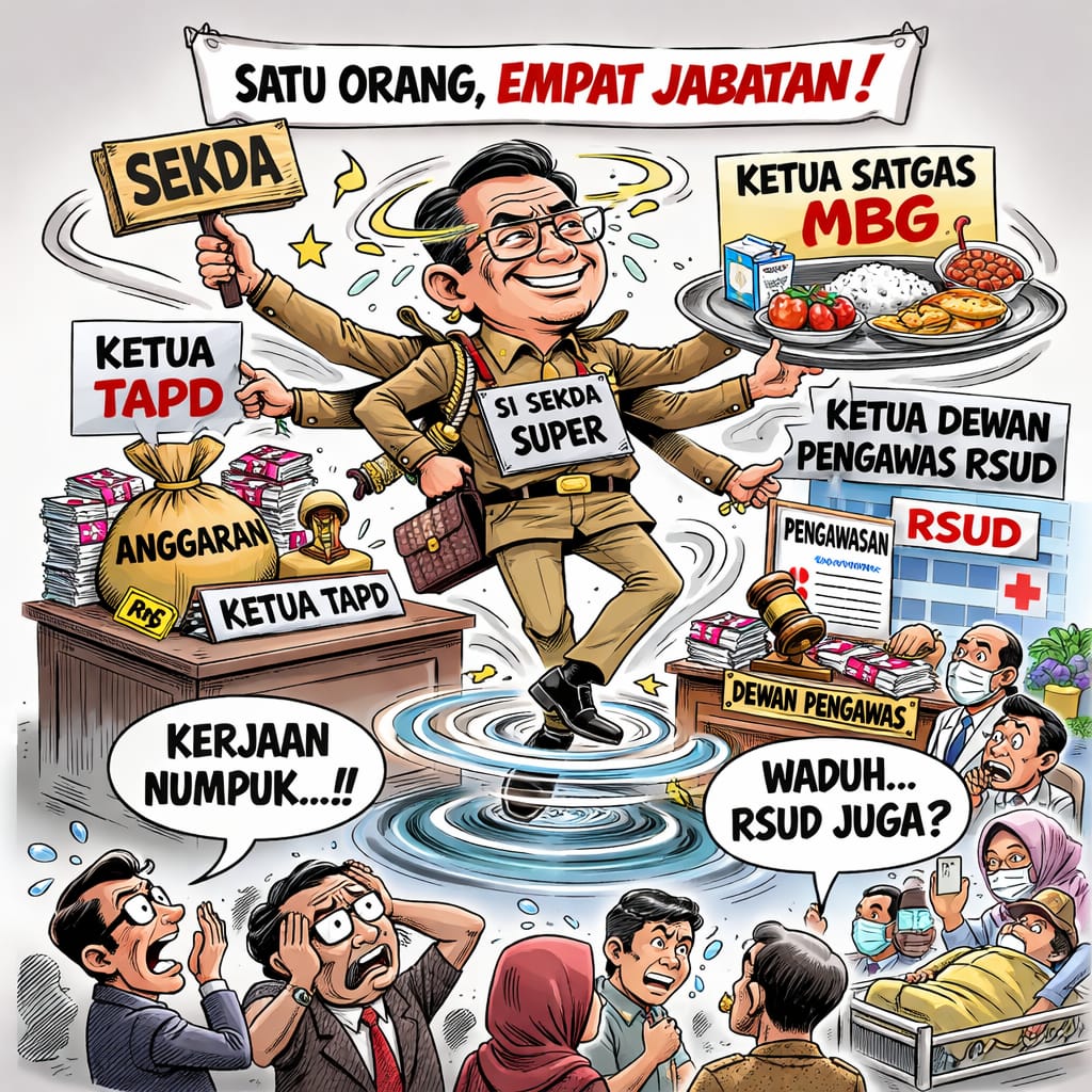 Sebagai Ketua TAPD, Sekda memegang kendali atas alokasi anggaran daerah, termasuk anggaran untuk RSUD. Di sisi lain, sebagai Dewas, ia bertugas menilai dan menyetujui rencana anggaran RSUD. Ini adalah anomali pengawasan. Sekda dalam posisi ini menjadi pihak yang “meminta” anggaran (sebagai Dewas RSUD) sekaligus “penentu” pemberian anggaran (sebagai Ketua TAPD). Check and balances menjadi mati, dan objektivitas pengawasan terhadap kendali mutu serta biaya terancam sirna.