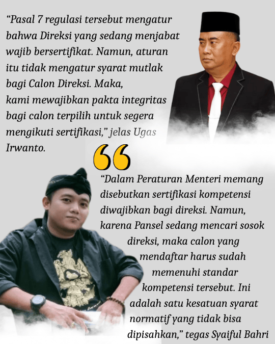 “Dalam Peraturan Menteri memang disebutkan sertifikasi kompetensi diwajibkan bagi direksi. Namun, karena Pansel sedang mencari sosok direksi, maka calon yang mendaftar harus sudah memenuhi standar kompetensi tersebut. Ini adalah satu kesatuan syarat normatif yang tidak bisa dipisahkan,” tegas Syaiful Bahri, Kamis (18/12/2025).